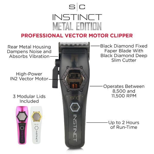 The Metal Edition Instinct Clipper delivers professional-grade cutting power with precision blades and a durable, ergonomic metal body. Designed for barbers who demand consistent performance, this clipper handles bulk removal, fades, tapers, and detailing with ease. Built for longevity and comfort during long shop hours, it’s a reliable choice for any barbershop or personal grooming setup.
